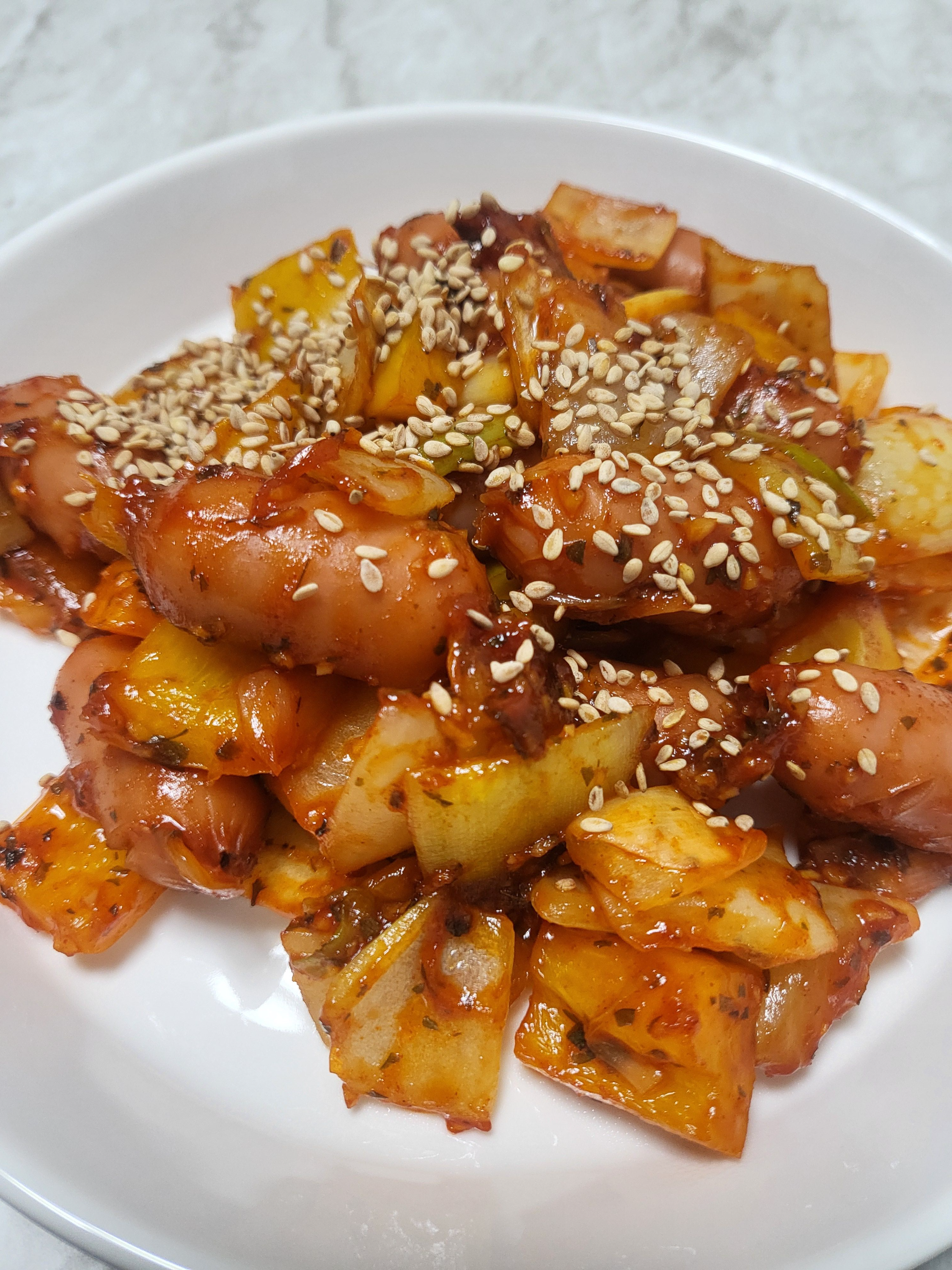 굴소스, 파프리카, 양파, 소시지!