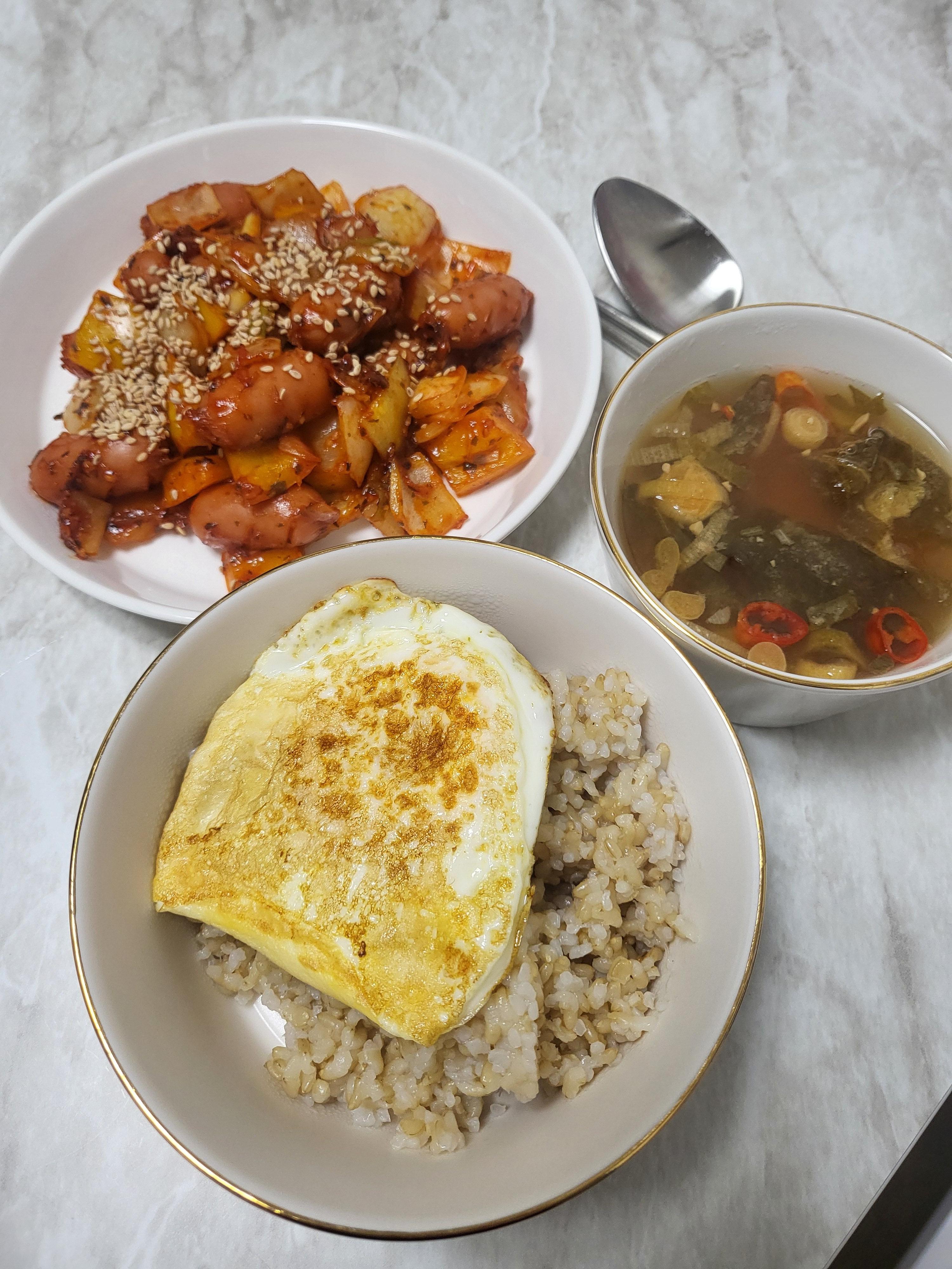 곤약밥에 프라이 하나 올리고