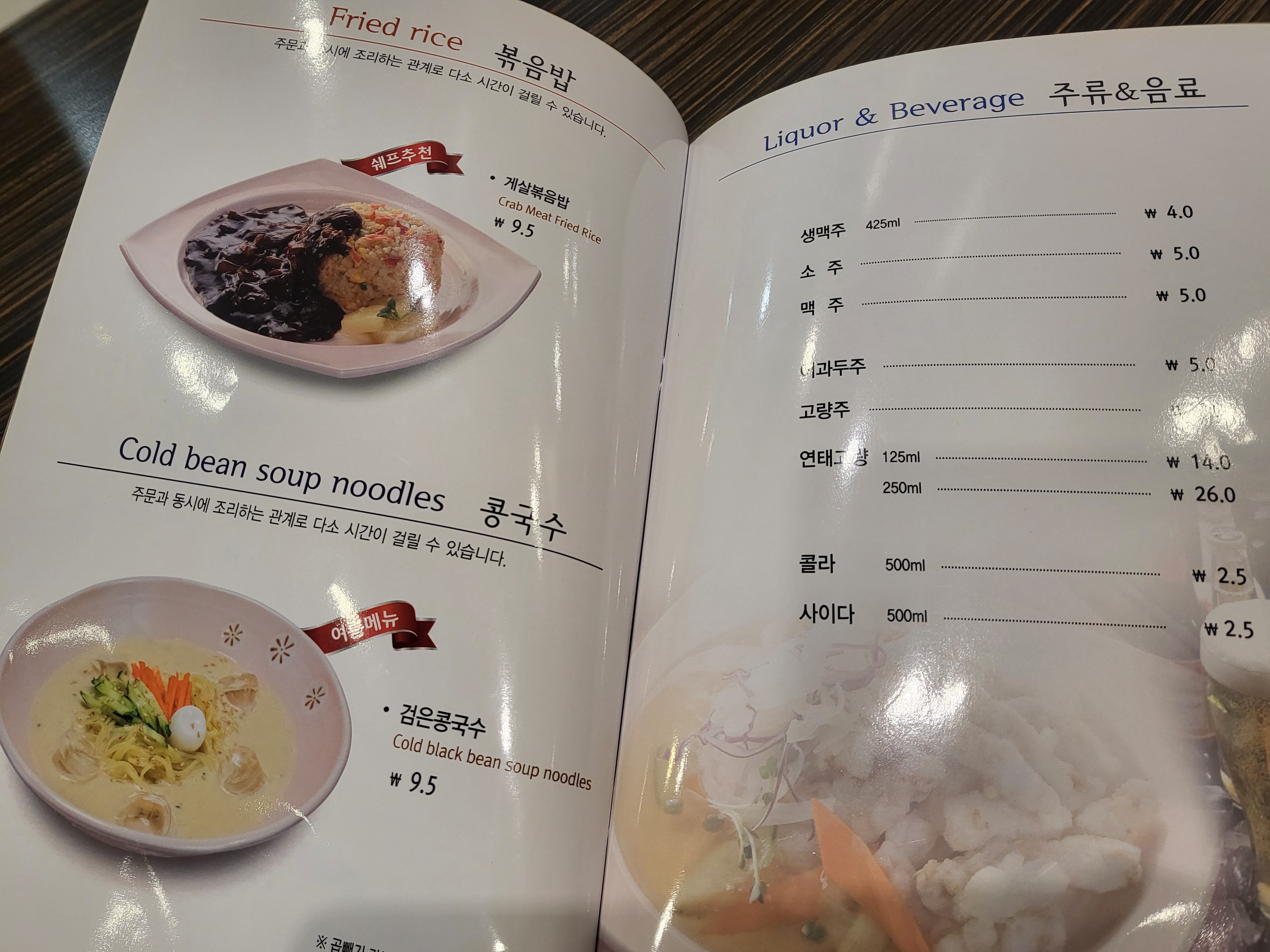 메뉴판 맨 앞장에
